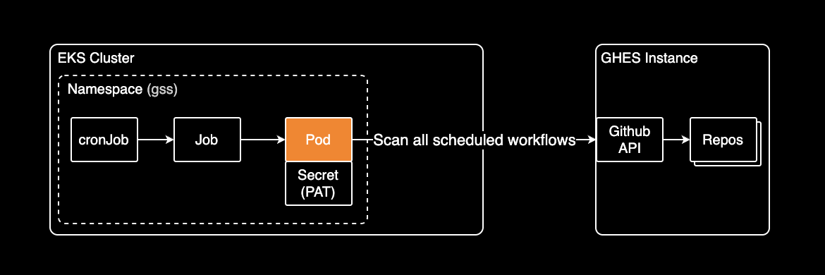 GSS(GHES Schedule Scanner)는 GitHub Enterprise Server의 스케줄된 워크플로우를 모니터링하고 분석하는 Kubernetes 애드온입니다. DevOps 및 SRE 팀이 CI/CD 워크플로우를 효율적으로 관리할 수 있도록 설계되었습니다.