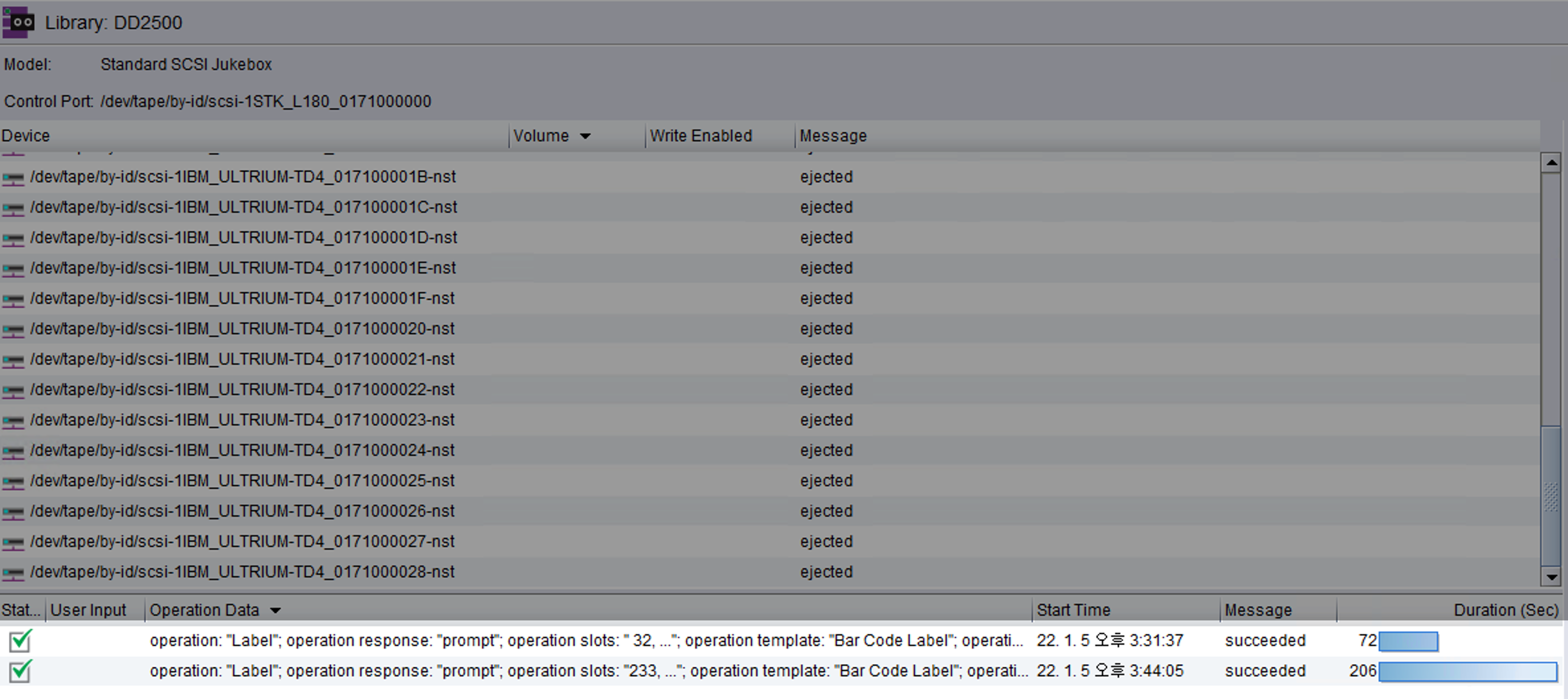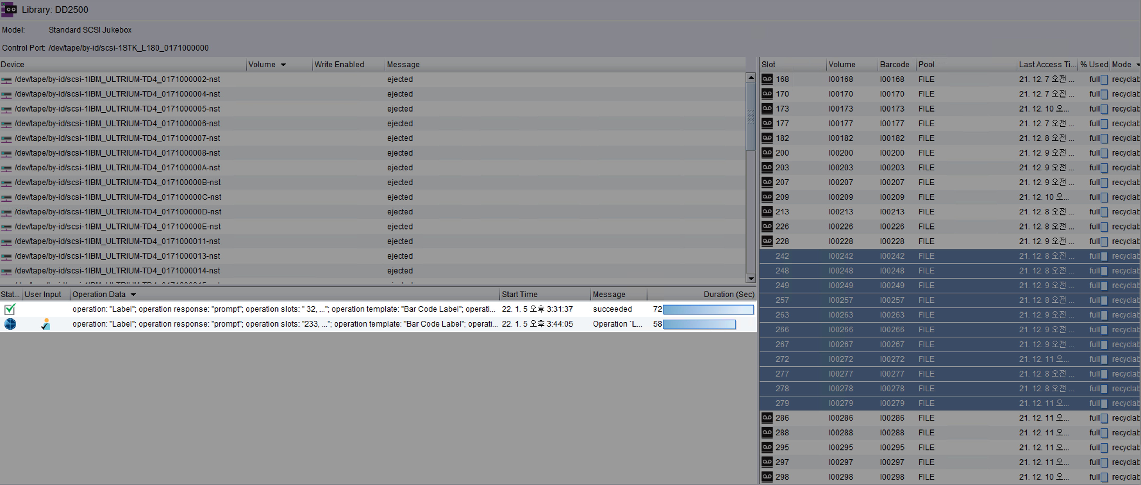 이제 지정된 가상 테이프들에 라벨이 새롭게 붙고 데이터를 밀어낼 것이다.